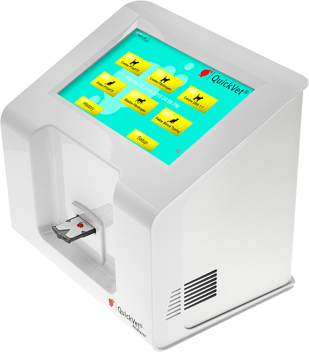 QuickVet er en innovativ og fullautomatisert analysator for koagulasjonsdiagnostikk på hund, katt og hest, samt blodtyping på hund og katt.